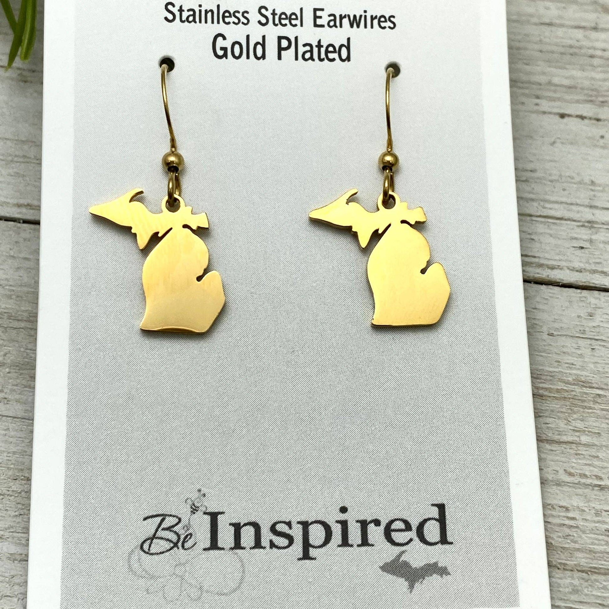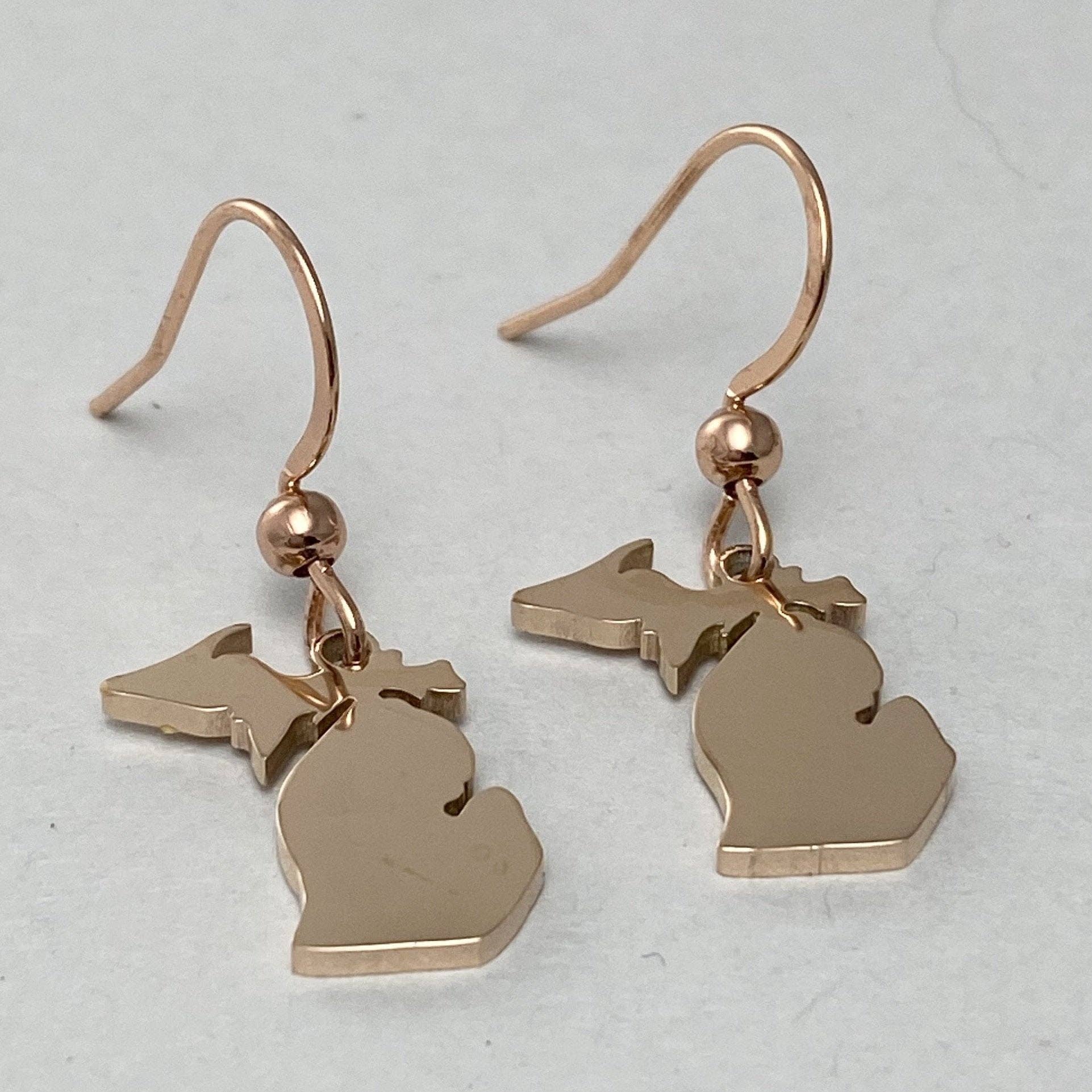 * Michigan Outline Stainless Steel, choose Gold or Rose Gold Plated earrings